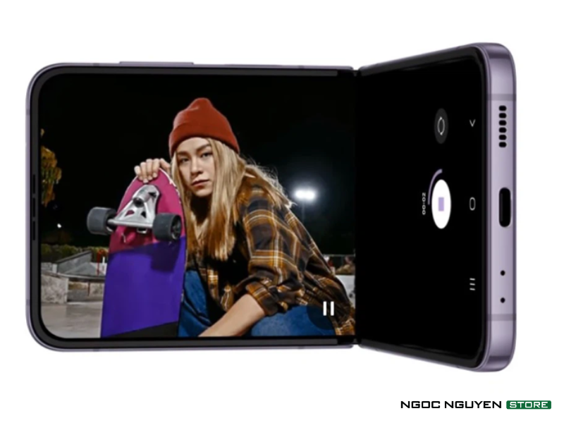 Thế hệ Galaxy Z Flip 2022 đánh dấu sự xuất hiện của công nghệ FlexCam, đem lại trải nghiệm camera linh hoạt nhất khi tận dụng các góc gập máy để xây dựng bộ thao tác quay chụp hoàn toàn rảnh tay. Đặt thiết bị xuống mặt phẳng, bạn sẽ thoải mái ghi lại những khuôn hình nhóm, chụp selfie và quay những thước phim thú vị với nhiều góc nhìn tuyệt vời.