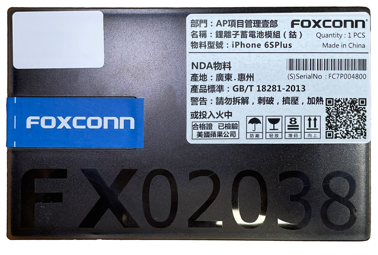 Pin Foxconn đạt được nhiều chứng nhận tiêu chuẩn chất lượng quốc tế, trong đó có đáp ứng toàn bộ tiêu chuẩn của Apple. Ngoài ra với lõi polymer, nó còn có khả năng sạc nhanh, hiển thị dung lượng pin chính xác và thời gian sử dụng lâu hơn nhiều loại pin khác.