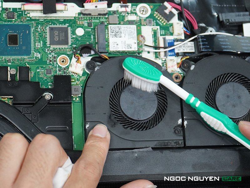 Quạt tản nhiệt laptop là 1 bộ phận vô cùng quan trọng trong toàn bộ quá trình vận hành của chiếc máy . bên cần được làm vệ sinh sạch sẽ chi tiết ( Thường là chu kì 6 tháng 1 lần )