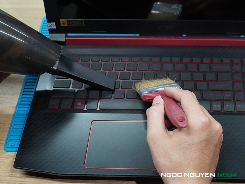 Laptop sẽ được KTV của Ngọc Nguyễn vệ sinh bằng chổi mềm và máy hút bụi , nhằm loại bỏ các bụi bẩn dưới bàn phím trong quá trình xử dụng máy . Để tuổi thọ của bàn phím được duy trì lâu hơn , thoa tác gõ văn bản mượt mà hơn .