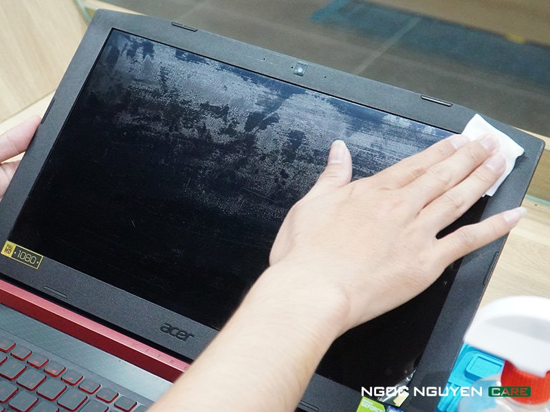 Trong quá trình xử dụng hàng ngày laptop rất dễ bị ố màn từ bên ngoài hoặc vỏ máy bị bán các loại bụi mà không thể lau sạch được bằng nước bình thường sẽ được KTV của Ngọc Nguyễn Care vệ sinh bằng dung tịch tẩy keo , nước rửa kính chuyên dụng loiaj bỏ đến 99% các vết bẩn bán trên màn hình và thân vỏ của laptop .